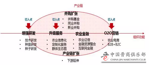 归结起来,当前农业产业链上市企业其发展核心为六大战略方向:增强研发、升级服务、产业链扩张、O2O营销、农业金融、并购扩张,进一步则能归类为专业化战略与多元化战略。依托原有的产业发展强化组织功能,是专业化战略,研发与服务是基础,金融是手段,营销是后续拓展的关键,在切入点上,从研发和服务切入存在更大成功可能性;产业链的扩张,是走多元化战略的表现,希望在农业行业外寻找更大的空间,寻求战略上的重大转型。两类发展战略无对错之分,重点看企业对市场的研判以及企业对行业的信心,当然不同细分行业实际上存在选择优劣。