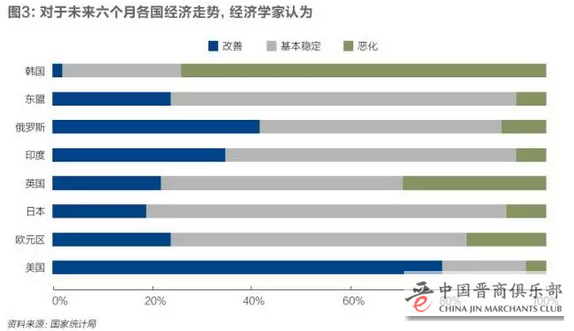 对于未来六个月韩国经济走势,逾七成(74%)经济学家预期“恶化”,24%预期“基本稳定”,仅2%预期“改善”(见图3)。
