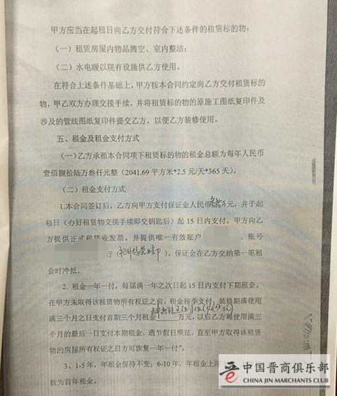 李实称,由于当时自己尚没拿到租赁商铺的房产证明,所以招行太原分行以此为由,将租金压低至186.30万元/年。同时,李实只想与招行太原分行签3年的租房合同,又被招行太原分行要求一签10年,且要求1-5年年租金不变,6-10年年租金上浮3%。