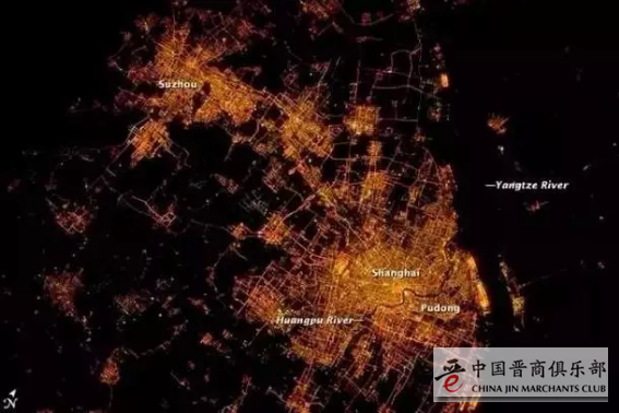 (图为上海及长三角的夜景)(2014年 NASA摄)