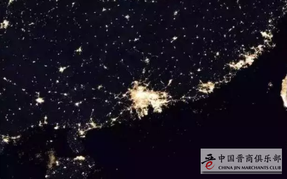 (图为珠三角的夜景)(2017年 NASA摄)
