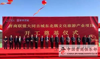 参加开工奠基仪式的领导有:北京山西企业商会会长、晋商联盟控股股份有限公司董事长李建国(中国晋商俱乐部荣誉顾问),省委常委、大同市委书记张吉福,大同市委副书记、市长马彦平,市人大常委会主任赵向东,市委常委、城区区委书记张韬,市委常委、常务副市长刘振国,市委常委、市委秘书长薛明耀,市古城保护建设领导组副组长祁学峰,市文化旅游组副组长郭占宝,市城市建设与管理组副组长李广林,城区区委副书记、区长董建中出席开工奠基仪式。晋商联盟大同文化旅游有限公司董事长王歆颜,晋商联盟大同文化旅游有限公司总经理贾金哲,国家文物局专家组专家、故宫博物院研究馆员、高级工程师张克贵,中国建筑技术集团有限公司总建筑师、大同古城东北隅项目一期执行总建筑师刘文杰等晋商联盟领导及嘉宾参加开工奠基仪式