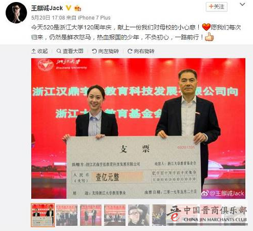 而在刚刚过去的浙江大学120年校庆,王麒诚和吴艳还向母校捐赠人民币1亿元,设立“浙江大学教育基金会汉鼎宇佑发展基金”,一时成为热点。