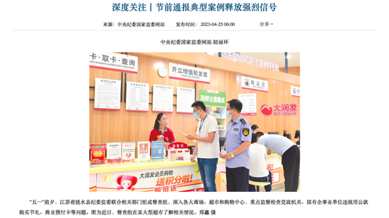4月25日,中央纪委国家监委网站发布《节前通报典型案例释放强烈信号》一文。