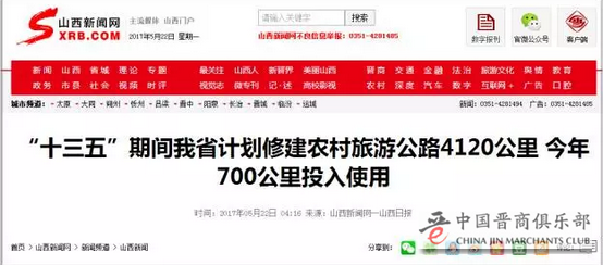 因此,山西省在“十三五”期间,将新改建一批通往各市县(区)各类景点的农村旅游公路,总长度为4120公里,共266个项目,涉及11个市,覆盖10个区、10个市和74个县,基本实现四级及以上旅游公路连通。