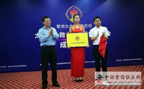 太原市小微企业创业创新基地城市示范工作领导小组办公室主任、太原市中小企业局局长高屹城;团省委发展部部长、省青年企业家协会常务副会长王爱民;山西省人力资源研究会会长王重一为副会长单位授牌