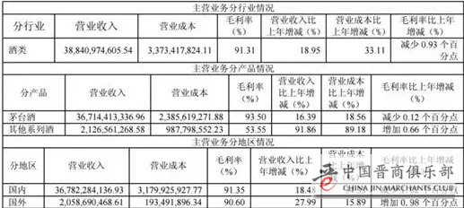上表分析得出:系列酒收入21.27亿,增长91.86%;