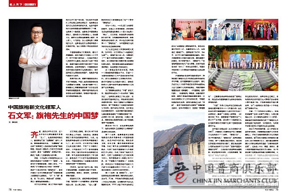 对于石文军来说,致力于传承中国传统文化并不是一时兴起。无论是早年在部队工作还是之后转业到地方,他的事业总是与文化有各种各样的关系。他在中国传统文化的实践里也算是摸爬滚打了一番,也取得了一番成就。他曾做过中国婚博会策划人、国际茶文化节的策划人;在收藏文化、国学文化领域也都曾潜心钻研,热心投入。今天的他,全心全意地投入到旗袍文化中,也算是他在文化领域所做的一次新的开拓,他认为那是一种应运而生的使命。