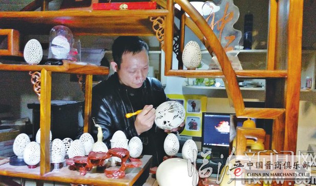 与蛋雕结下不解的缘分,缘于一次在网上看到有人在鸡蛋上雕刻,孔斌感到十分稀罕,就在网上淘来了雕刻工具,自学蛋雕技艺。鸡蛋个小皮薄,个大且皮稍厚一些的鸭蛋、鹅蛋较好,约为0.3毫米,其实最好的还是鸵鸟蛋,约有2毫米厚,不过一只就上百元,成本太大。”孔斌告诉记者,起初学习用的是鸡蛋,仅0.2毫米的鸡蛋壳能练出手艺,现在他用的多数是鸭蛋、鹅蛋。