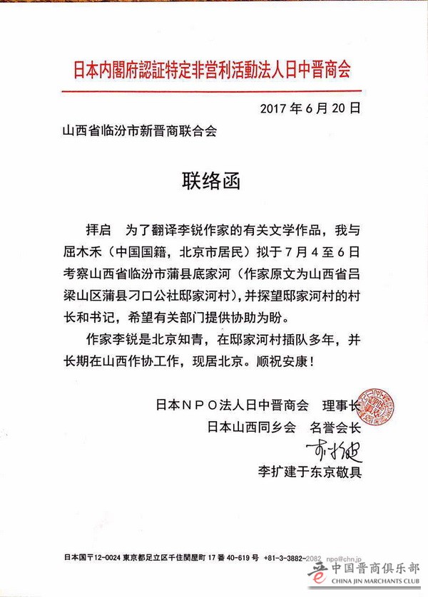 邸家河村是知名作家李锐曾经知青下乡时待过的村庄,李锐在后来的文学作品中对该村庄有介绍,此次日中晋商会来临汾访问,正是为了翻译李锐的文学作品而进行的相关实地走访。