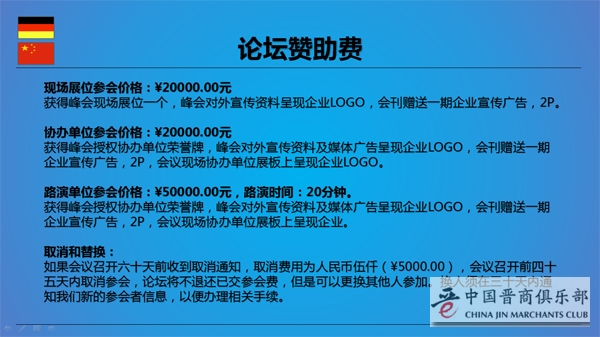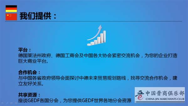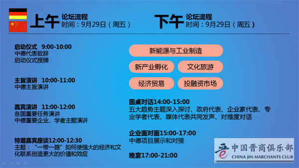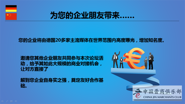 中德项目展示和对接(20席)(中国晋商俱乐部理事成员及联合发起机构成员可申请,申请成功费用人民币5万元整)