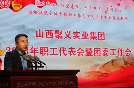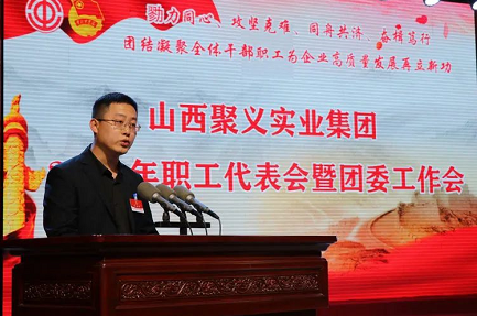 集团能源副总王卫军宣读集团党委书记、董事局主席王殿辉贺词。王主席贺词中指出,聚义集团始终牢牢把握企业发展的机遇期,坚定发展信心,勇担社会责任,履行着民营企业和晋商人的担当作为。他表示,今年是集团公司“三步走”战略推行首年,是“一体化、高质量、内循环”战略巩固深化之年,广大干部职工迎难而上,努力拼搏,甘于奉献,为集团各项事业的发展作出了重要贡献。集团党委、工会、团委历年来积极维护职工根本利益,强化职工专业技能提升,加强青年人才梯队建设,广泛深入持久开展“始终把关心关爱职工放在一切工作的首位”“不让一名职工擦破一点皮”行动,为广大职工发挥自身价值提供了广阔空间和舞台。王主席要求广大职工要大力弘扬劳模精神、工匠精神,牢牢把“空谈误企、实干兴业”铭刻于心,党委、工会、团委要聚焦职工“急难愁盼”问题,靶向发力,精准施策,为广大职工办实事、解难事、做好事,做贴心、爱心、关心职工的使者。广大青年要锐意进取、奋发有为,为全方位推动集团高质量发展作出新的贡献。