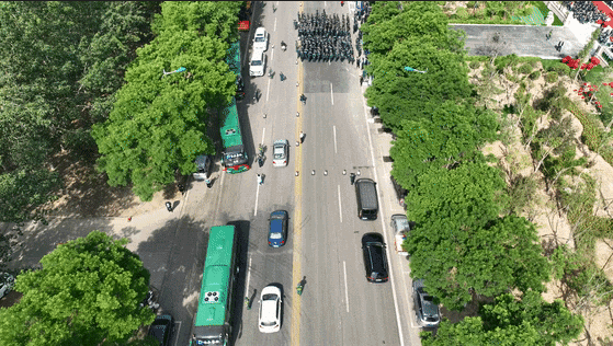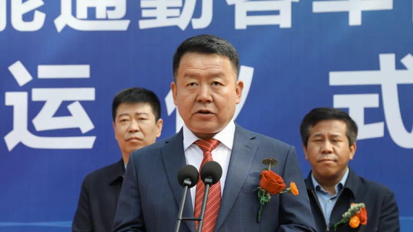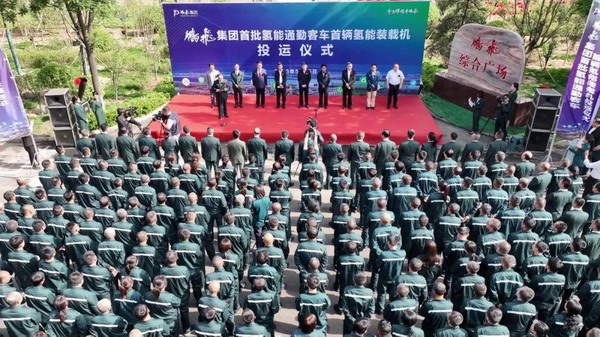 张由泉宣布仪式正式启动。伴随着汽车鸣笛声响起,氢能通勤客车和氢能装载机从活动现场驶出,正式投入运行。