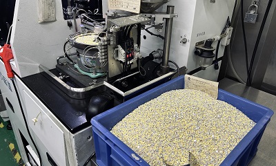 LED灯珠与处理机器,拍摄:界面新闻记者