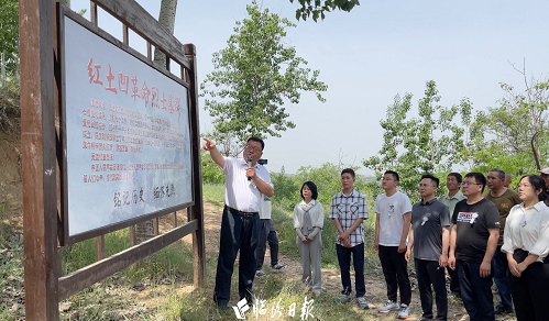 5月17日上午,作为尧都区红色革命重点村的苏寨村正在举行一场特殊的主题党日活动,50余名基层党员干部重走红军路,继承革命先烈的攻坚精神。