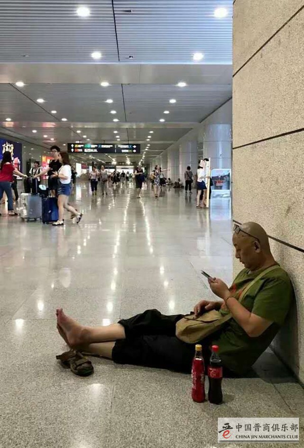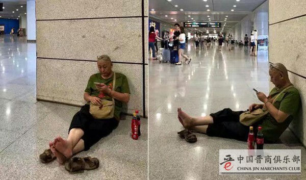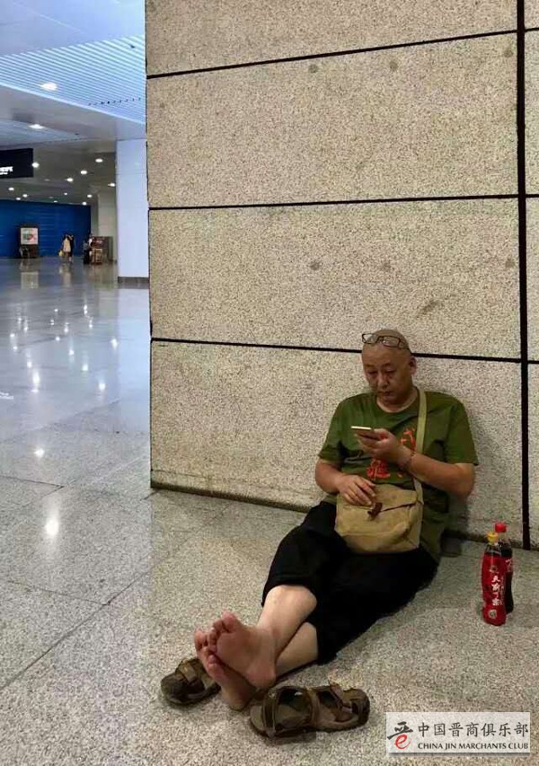 8月24日,四川建川博物馆馆长樊建川(中国晋商俱乐部荣誉顾问)被曝出两张“沦落”火车站、赤脚靠墙席地而坐等车的照片。经确认,照片拍摄于8月22日,樊建川当时在重庆火车站候车,忙完重庆建川博物馆事宜后,正准备出发返回成都。