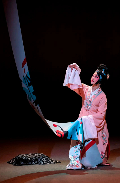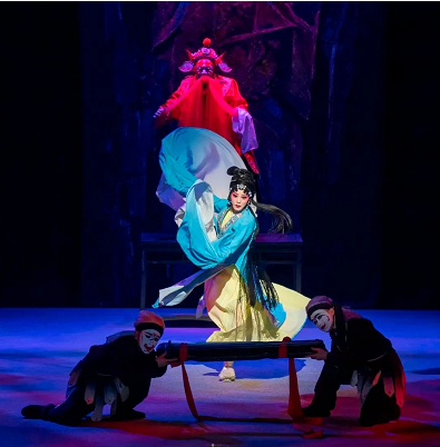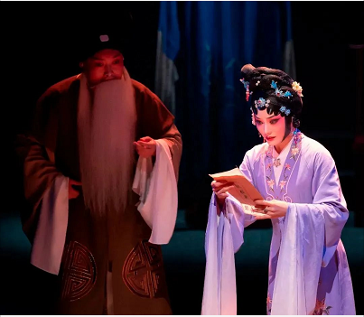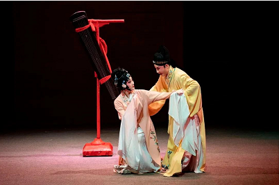晋剧《望海楼台》是根据传统晋剧《打神告庙》改编,郑芳芳饰演的敫桂英雪天救书生王魁,赠琴送银赴考,付真情受尽煎熬,王魁高中后背信弃义,一纸休书惹得天怒人怨……剧中以古琴贯穿始终,铺陈了抚琴遥祭、飞书落琴、弹琴表意、泪别赠琴、逃路丢琴、罗袖打琴、香魂断琴、抱琴探情、琴讨浪鸣等故事情节,唱腔委婉深沉、震撼人心,剧情跌宕起伏、情景交融,整个舞台气势磅礴,美轮美奂,将人们耳熟能详的故事深化到了新的美学欣赏高度,充分展示了晋剧之美、晋剧的悲剧之美。