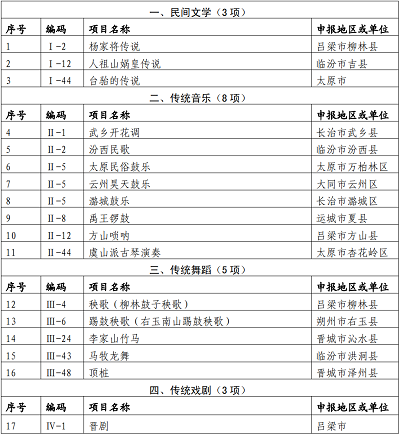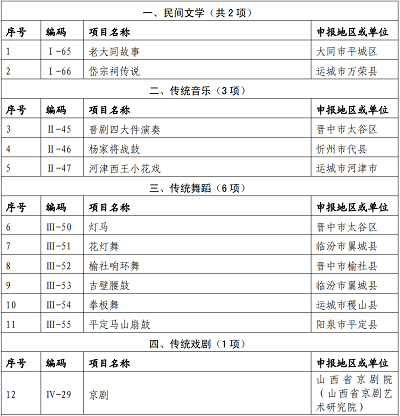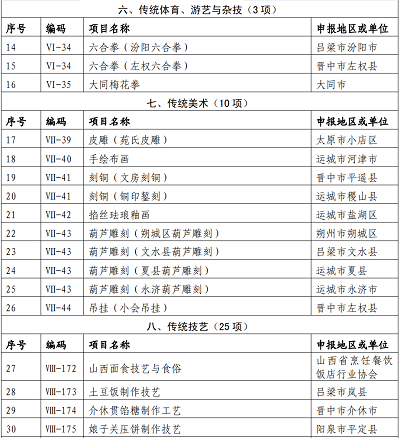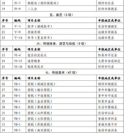 山西省第六批省级非物质文化遗产代表性项目名录扩展项目名录