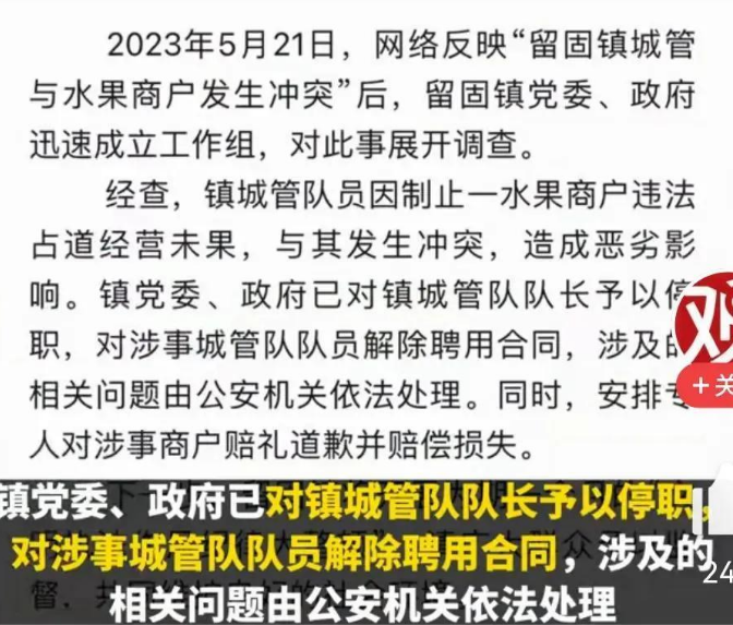 更让人意想不到的是,镇里的处罚结果出来了,对于镇城管队长的处罚竟然仅仅是停职!