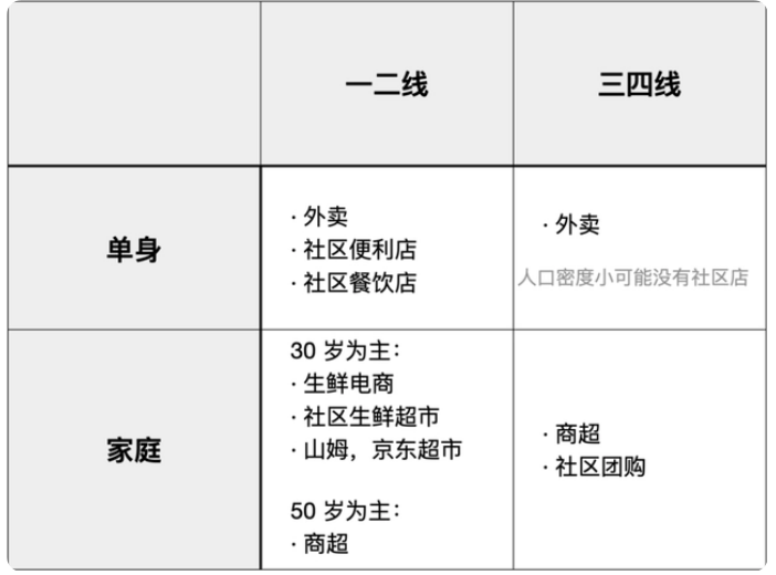 生鲜电商的核心用户大多是家庭用户、非单身用户,毕竟对 2 人以上场景,自己做饭是一个更省钱的选择,在此基础上,采购三天的生鲜并送货到家,还能更省一些时间。