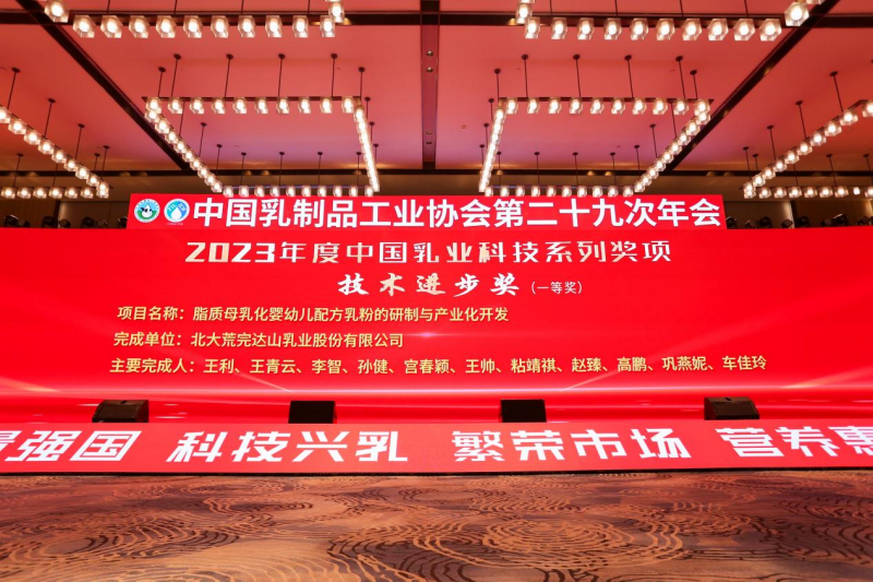 大会授予完达山研发创新中心“脂质母乳化婴幼儿配方乳粉的研制与产业化开发”项目2023年度中国乳制品工业协会技术进步奖一等奖。据悉,此次获奖的项目出发点是为满足母乳不足、无母乳和不能母乳喂养的妈妈需求,同时适应市场需要,结合母乳的营养特点,设计出接近中国母乳营养组分的婴幼儿配方奶粉。