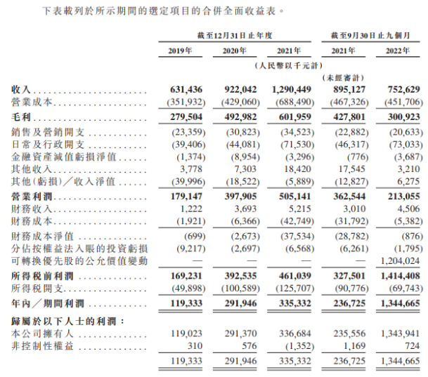 根据招股书,乐华娱乐是包括艺人管理、音乐IP制作及运营和泛娱乐三大业务在内的文化娱乐平台。2019年~2021年和2022年前九个月,乐华娱乐的营业收入分别为6.31亿元、9.22亿元、12.90亿元和7.53亿元,营业利润分别为1.79亿元、3.98亿元、5.05亿元和2.13亿元。