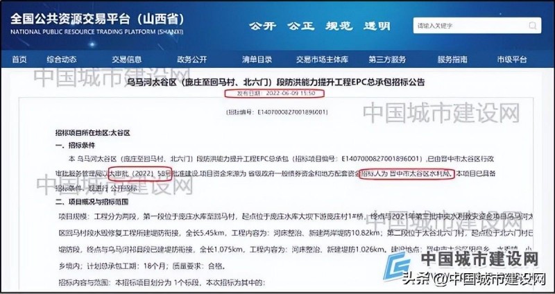 据全国公共资源交易平台显示,晋中市太谷区水利局于2022年6月9日,发布“乌马河太谷区(庞庄至回马村、北六门)段防洪能力提升工程EPC总承包”招标公告。据公告显示,乌马河太谷区(庞庄至回马村、北六门)段防洪能力提升工程EPC项目,已由晋中市太谷区行政审批服务管理局以太审批(2022)58号批准建设,项目资金来源为省级政府一般债券资金和地方配套资金。