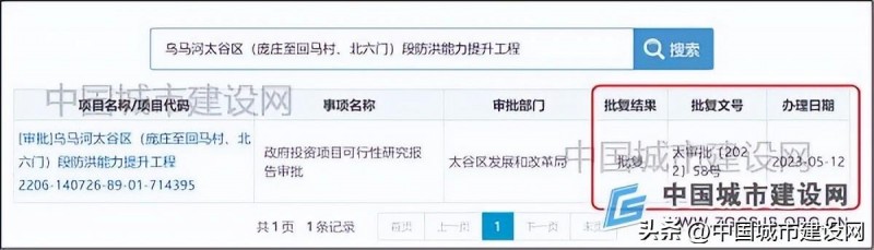 2023年5月12日,山西省晋中市太谷区发展和改革局作出一项审批事项批复,审批项目名称为“乌马河太谷区(庞庄至回马村、北六门)段防洪能力提升工程”,审批事项名称为“政府投资项目可行性研究报告审批”,批复文号为“太审批〔2022〕58号”。