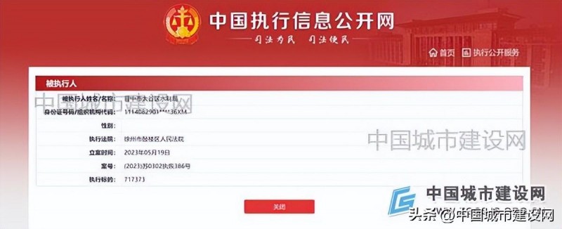 此外,中国执行信息公开网显示,2023年5月19日,晋中市太谷区水利局被徐州市鼓楼区人民法院列为被执行人,案号“(2023)苏0302执恢386号”显示,执行标的为717373元。