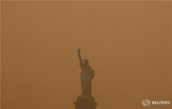 纽约居民称,空气中弥漫着一股烧焦的味道,视野也开始变得朦胧起来,更为严重的是,多名网友拍摄的照片显示,当日美国著名的地标建筑物自由女神像和低过大厦也被雾霾笼罩,国外网友还戏称,“可恶,纽约到处都是烟雾,这味道让我想起了印度。”