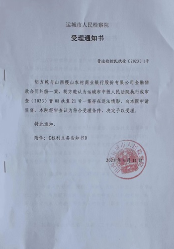 为了使稷山农商银行的不法行为受到应有的处罚,同时也为了能够为自己正名、为自己伸冤。胡先生又向运城市人民检察院等司法部门递交了反映材料。目前,胡先生仍然在维权的道路上艰难前行。胡先生希望能得到多方面的关注和支持!同时也呼吁广大民营企业家、私营业主等需要贷款的群体一定要擦亮眼睛、警惕贷款过程中的套路和欺骗手段!