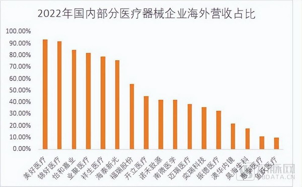 从国内A股上市医疗器械公司业绩来看,业绩亮眼的企业的共同点在于海外营收占比超过40%。