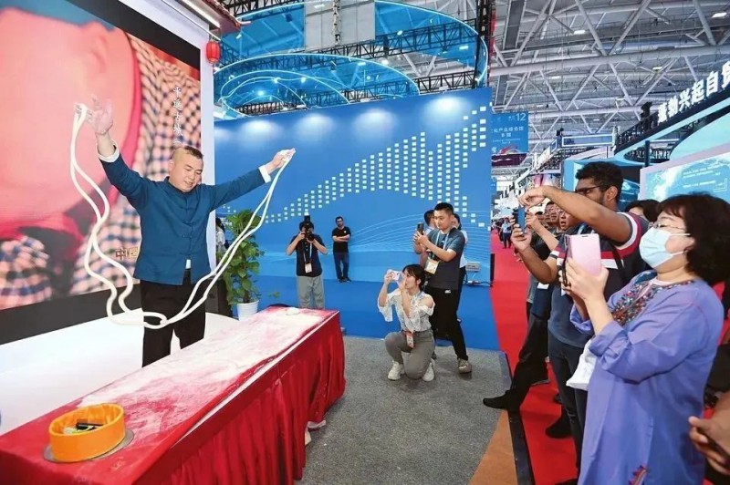 ▲ 6月8日,深圳文博会我省展区内,面食绝活、剪纸、威风锣鼓等表演吸引了众多中外观展者驻足欣赏。