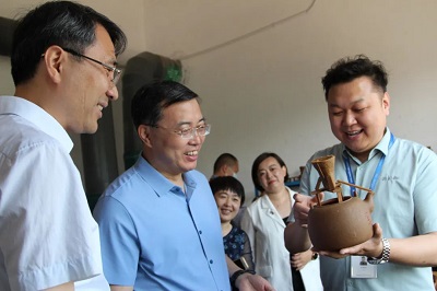 6月13日上午,晋城市委常委、副市长、宣传部长武健鹏莅临晋韵堂工厂调研,泽州县委书记张军、县委常委宣传部长王晋亭、大阳镇党委书记米娟、晋韵堂马保元陪同参观。