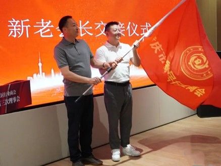 图为新老会长交旗(左为陶国林)。 重庆市家居行业商会供图