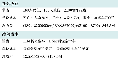 为此,他们对相关变量进行了估值,甚至对如果发生车祸死亡,则人均死亡成本为20万美元。他们的计算明细如下: