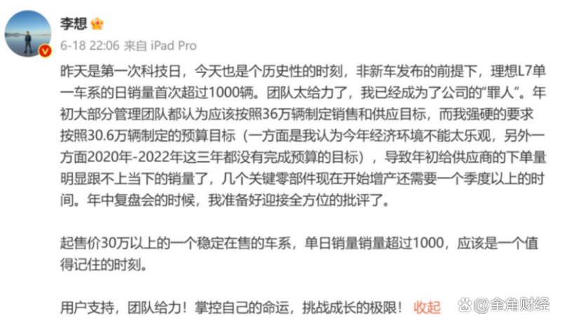 因此,华为消费者业务CEO余承东此前为AITO问界定下的年销售目标,就是30万辆;理想汽车董事长兼CEO李想最近在社交媒体称,他年初制定的2023年销售目标为30.6万辆,而大部分管理团队认为目标应该设在36万辆,即月均3万辆。