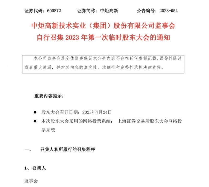 按照计划,中炬高新将在7月24日召开2023年第一次临时股东大会。这次大会是由公司监事会自行召集,而审议的议案则是罢免和重新选举公司董事。