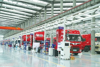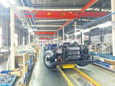 鹏飞集团和东风特汽氢燃料汽车生产车间
