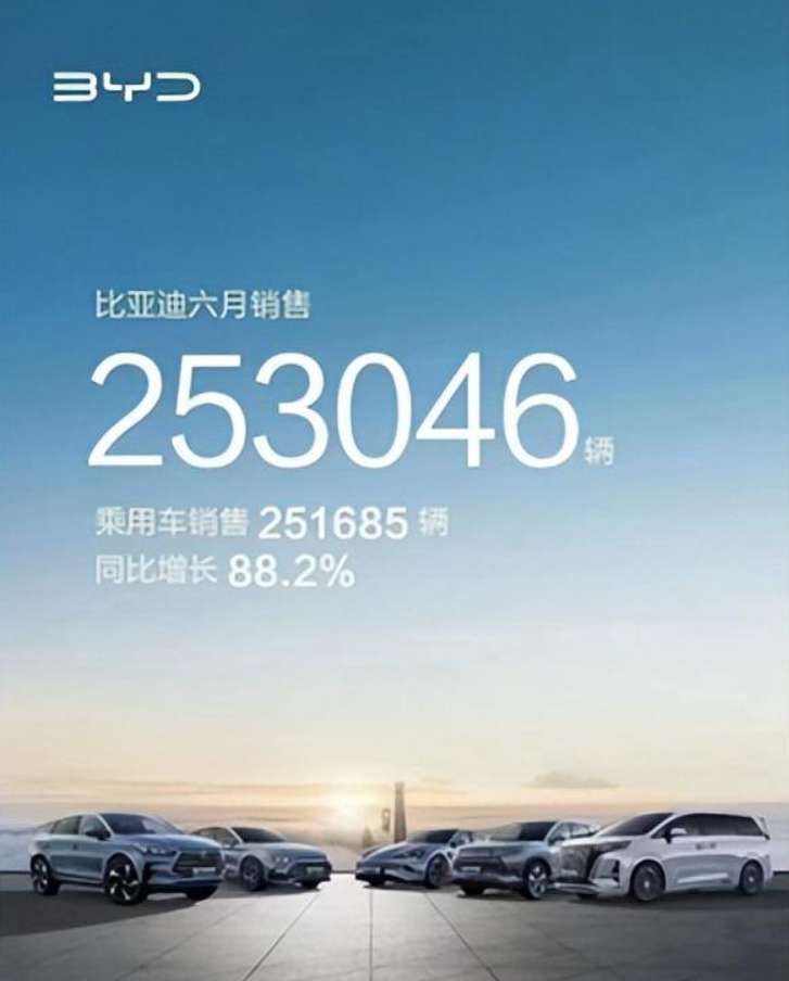 7月,比亚迪发布了2023年6月产销快报。数据显示,2023年6月比亚迪新能源车销量为253046辆,与去年同期134036辆相比增长88.79%。1至6月累计销量为1255637辆,与去年同期累计641350辆相比增长95.78%。
