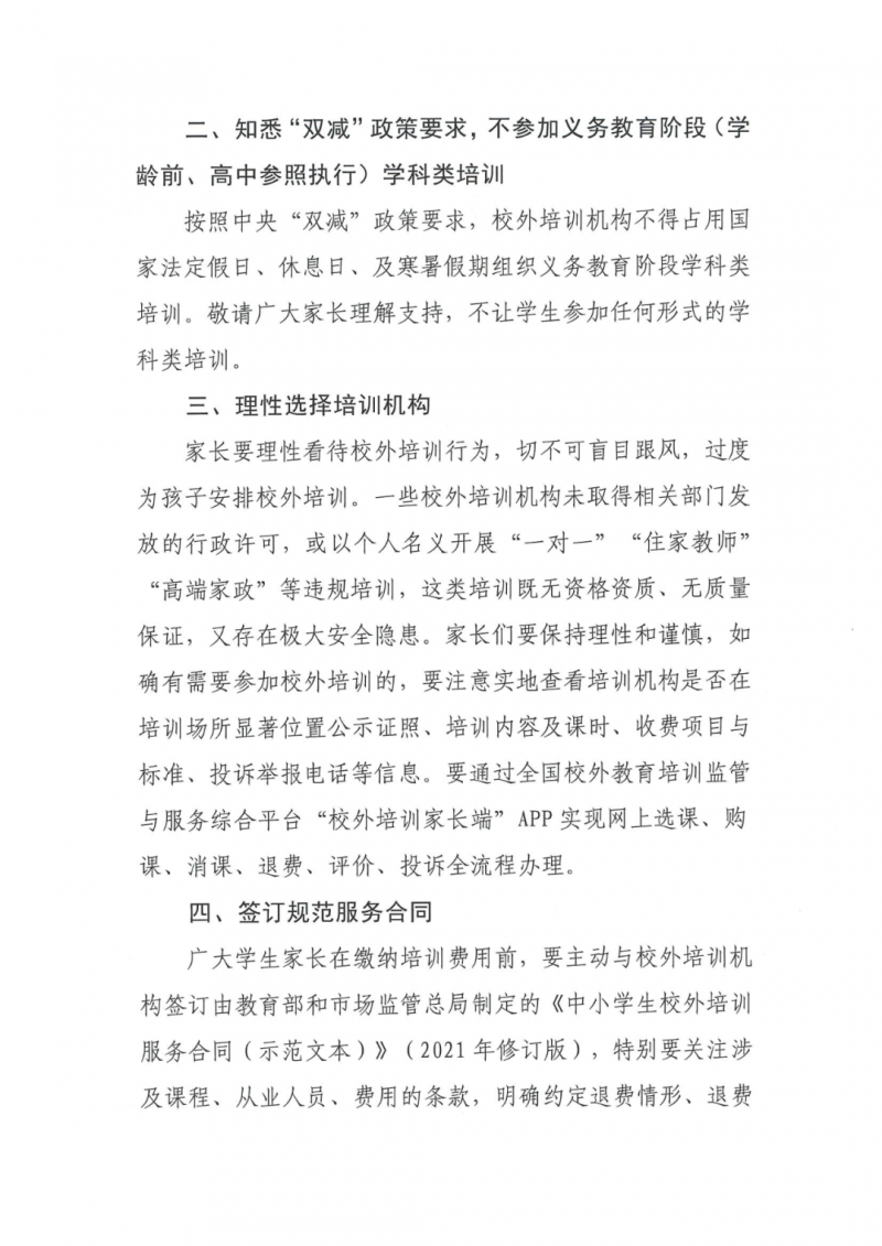 朔城区:关于2023年暑期校外培训治理及“监管护苗”专项行动致广大学生家长的公开信