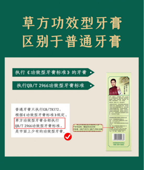 真正的功效牙膏生产企业,如草方牙膏,严格按照《功效型牙膏标准》的规定,所出品的全部功效牙膏全部执行QB/T2966功效型牙膏标准,是市面上少有的功效型牙膏。