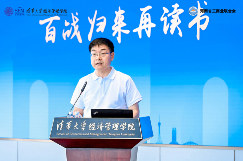 清华大学经济管理学院创新创业与战略系教授、副院长李纪珍在总结时,对第四期中原民营企业家培养计划高端培训班的成功举办表示热烈的祝贺!他回顾了培训班开班以来的教学情况:在课程体系上,紧贴中原民营企业数字时代转型发展的现实需要,结合了民营企业结构性改革重点问题;在课程体系设置“势”、“融”、“企”、“家”为主题的课程矩阵;在教学形式上,采取丰富多元、高情感体验——除了课堂教学、案例讨论、小组分享等常规教学方法,还引入了领导力拓展训练,实战模拟、企业参访(腾讯、比亚迪、杰普特光电)等丰富多元的体验式教学;在师资阵容方面,大师云集、思想激荡——配备了19名在各自领域耕耘数十年的顶级学者、教授和专家,其中包含1名中科院院士(张钹),1名国家级青年人才计划(马弘),2位院长、副院长(李纪珍、童关鹏),2位研究院院长(朱岩、王勇),2位正、副系主任(马弘、李飞)。因此,本期培训班有以下几个特点:一是学员素质高;二是师资力量强;三是课程安排实;四是培训效果好。具体表现在本期培训班50名学员整体平均出勤率最高——达到95%,其中出勤率100%的有28人;学员考试的成绩最好——获95以上7人,90分以上28;学员的结业报告质量最高——全班50名学员,绝大多数完成了结业报告,有5位同学获优秀论文奖,9位同学获95分以上。