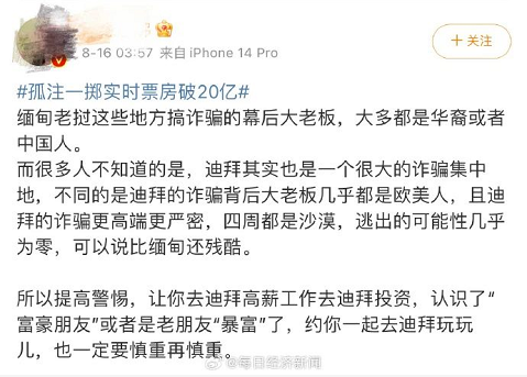 近日,多位网友发布微博,提到迪拜也是一个诈骗集中地,有网友提醒“提高警惕,让你去迪拜高薪工作去迪拜投资做生意,认识了‘富豪朋友’或者是老朋友‘暴富’了,约你一起去迪拜玩玩儿,也一定要慎重再慎重。”