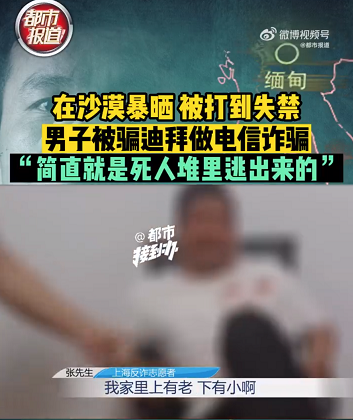张先生在那里不仅受到各种折磨,还让他打字做电信诈骗。中途有次逃跑,不幸被抓了回来,回来受到了更残酷的折磨。不仅被棍子打到失禁,还把人拉到沙漠里太阳暴晒。