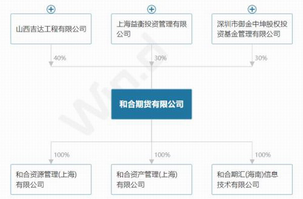 Wind数据股权穿透图显示,和合资产管理有限公司是和合期货有限公司100%持股的3家子公司之一。