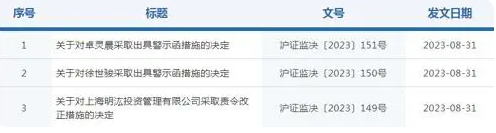 个人层面,徐世骏、卓灵晨分别被采取出具警示函措施。