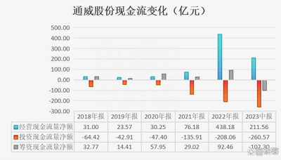 财报显示,2023年上半年,通威股份投资活动现金流出262亿元,筹资活动流出102亿元,最终现金以及现金等价物净额流出超过151亿元。