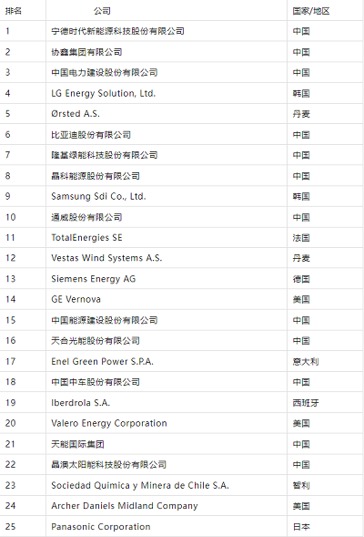 ▲2023年全球新能源企业前50企业
