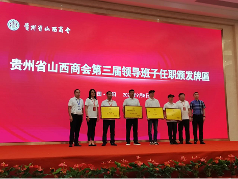 山西省工商联党组成员、副主席卫明喜讲话,贵州省山西商会第三届领导班子亮相,黔晋两省领导给商会新一届领导班子颁发牌匾。